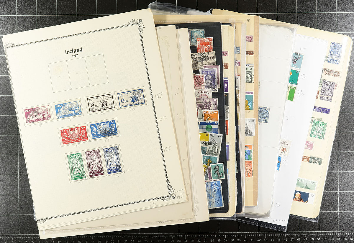 Collection / accumulation of primarily used Ireland, 1922-2001, containing a few thousand stamps in several album and stock pages. The lot generally ranges from Scott #1/1319B, containing singles and several sets, along with some back of the book issues. A spot check indicated some sets cataloguing $10 to $20 each, with the owner's 2015 Scott catalogue value totaling US$1,155.00, leaving potential finds for dedicated collectors. Overall fine to very fine. Estimate =