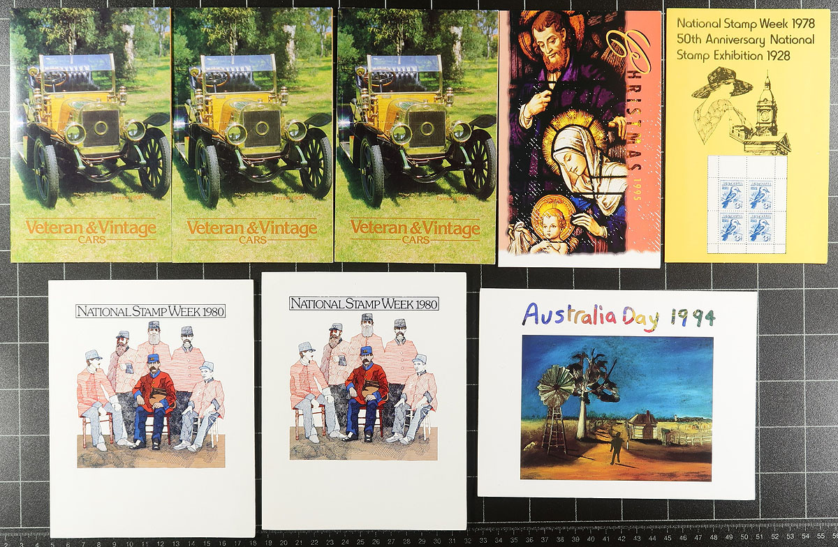 Nice group of Australia post office presentation packs, 1970's-1990's, containing just over 100 in totals noting singles, several sets, and a few souvenir sheets, including the "Australian Bicentennial Collection". A clean lot especially for topical and thematic collectors as we encountered several suitable subjects, or for dealers looking for stock. Face value is at least a few hundred dollars and well worth our low estimate. Estimate =