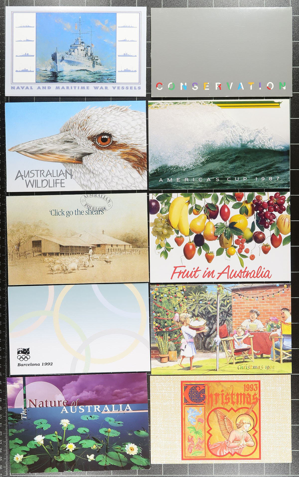 Nice group of Australia post office presentation packs, 1970's-1990's, containing just over 100 in totals noting singles, several sets, and a few souvenir sheets, including the "Australian Bicentennial Collection". A clean lot especially for topical and thematic collectors as we encountered several suitable subjects, or for dealers looking for stock. Face value is at least a few hundred dollars and well worth our low estimate. Estimate =