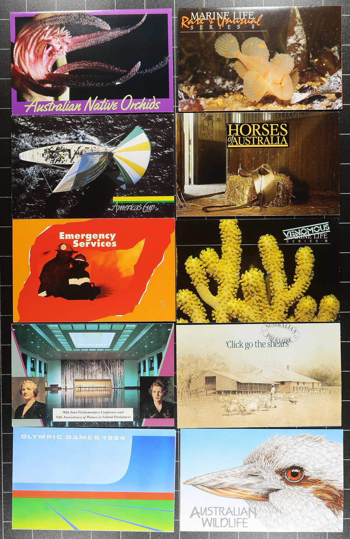 Nice group of Australia post office presentation packs, 1970's-1990's, containing just over 100 in totals noting singles, several sets, and a few souvenir sheets, including the "Australian Bicentennial Collection". A clean lot especially for topical and thematic collectors as we encountered several suitable subjects, or for dealers looking for stock. Face value is at least a few hundred dollars and well worth our low estimate. Estimate =