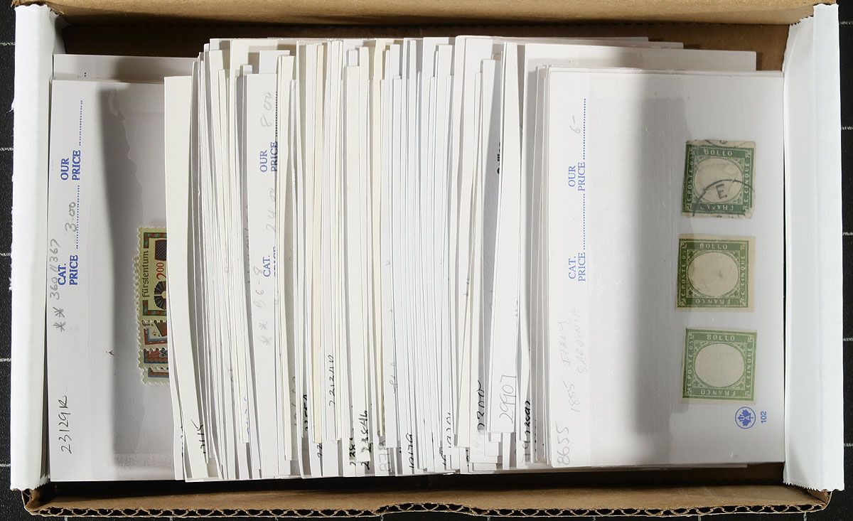 Europe. Group of primarily used Europe in roughly 125x dealer "102" cards, with material generally ranging from the 1880's to the 1960's. We note a mixture of classic used, with some mint sets of semi-postals and other singles, with better representation from France, Spain, Italy and Fiume, Austria, and a few other countries. Most of the cards retail from $2 to $20 each, with a total retail price at $675. A nice value lot for all collectors, overall fine to very fine. Estimate =