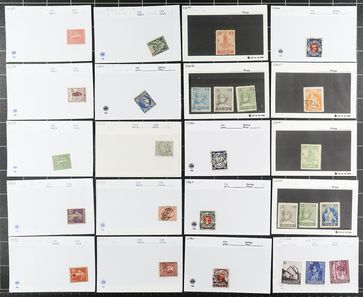 Europe. Group of primarily used Europe in roughly 125x dealer "102" cards, with material generally ranging from the 1880's to the 1960's. We note a mixture of classic used, with some mint sets of semi-postals and other singles, with better representation from France, Spain, Italy and Fiume, Austria, and a few other countries. Most of the cards retail from $2 to $20 each, with a total retail price at $675. A nice value lot for all collectors, overall fine to very fine. Estimate =