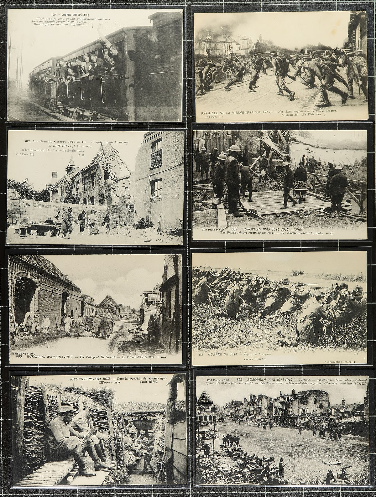 France WWI in Ruins. A visually stunning array of 22 postcard, primarily showing the ruins of buildings in towns / cities as a result of war. Remarkable pristine condition on all (considering these are all over 100 years old now), with all being in individual plastic sleeves. Estimate =