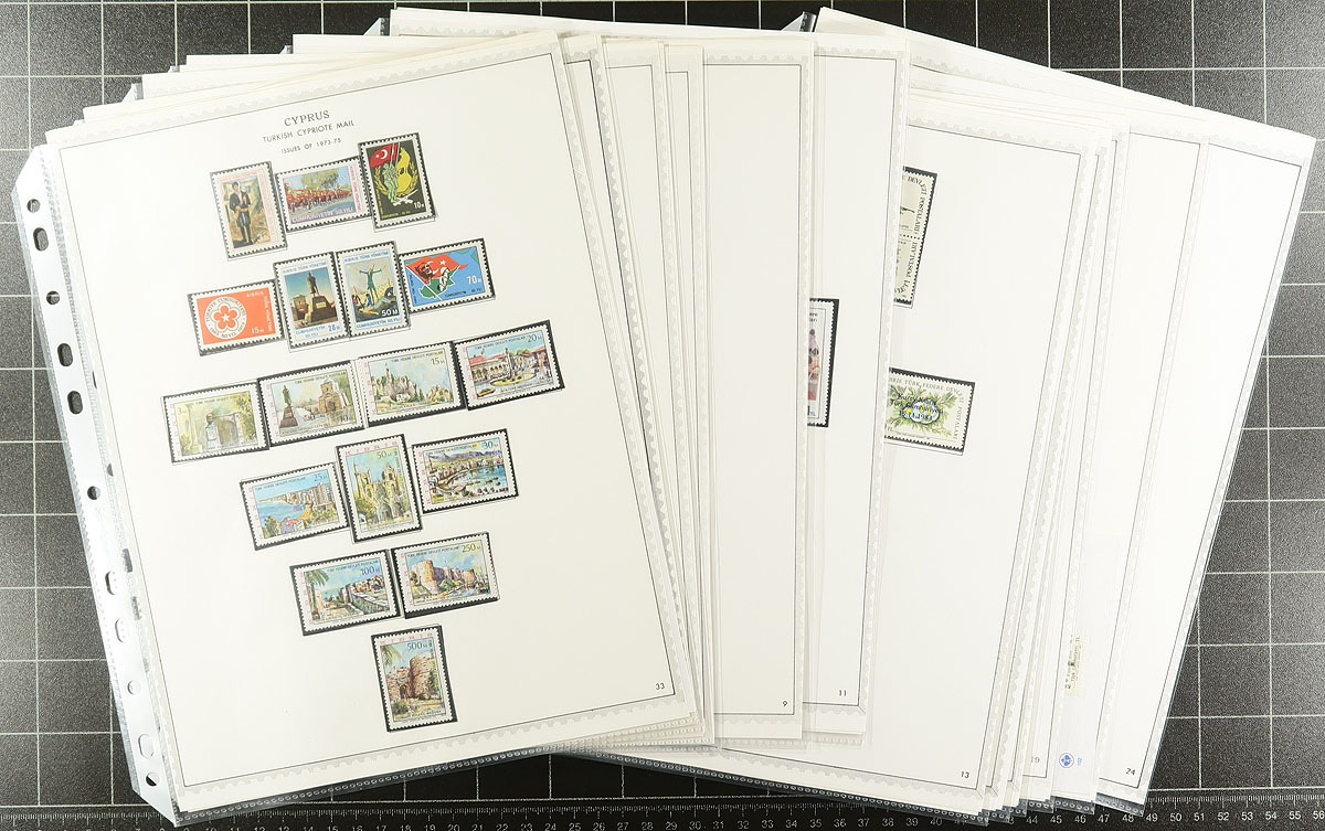 Nice collection of mint Northern Cyprus, 1974-1989, containing a few hundred stamps nicely organized in hingeless mounts on Minkus album pages. The collection ranges from Scott #1/251 (99% complete in period), containing sets and a few souvenir sheets noting a few better with #s 1-7 (c.v. $89.75 total), 127 souvenir sheet ($60), along with a few items ranging from $5 to $10. 2026 Scott US$376.15 =