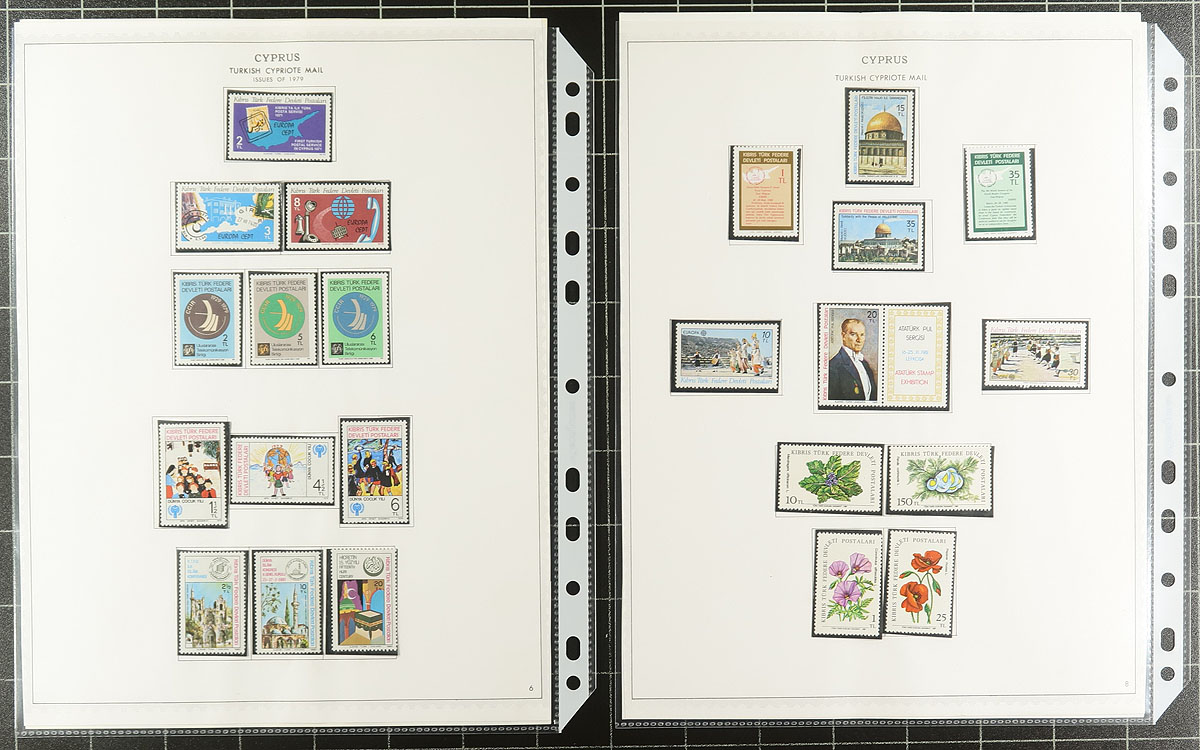 Nice collection of mint Northern Cyprus, 1974-1989, containing a few hundred stamps nicely organized in hingeless mounts on Minkus album pages. The collection ranges from Scott #1/251 (99% complete in period), containing sets and a few souvenir sheets noting a few better with #s 1-7 (c.v. $89.75 total), 127 souvenir sheet ($60), along with a few items ranging from $5 to $10. 2026 Scott US$376.15 =