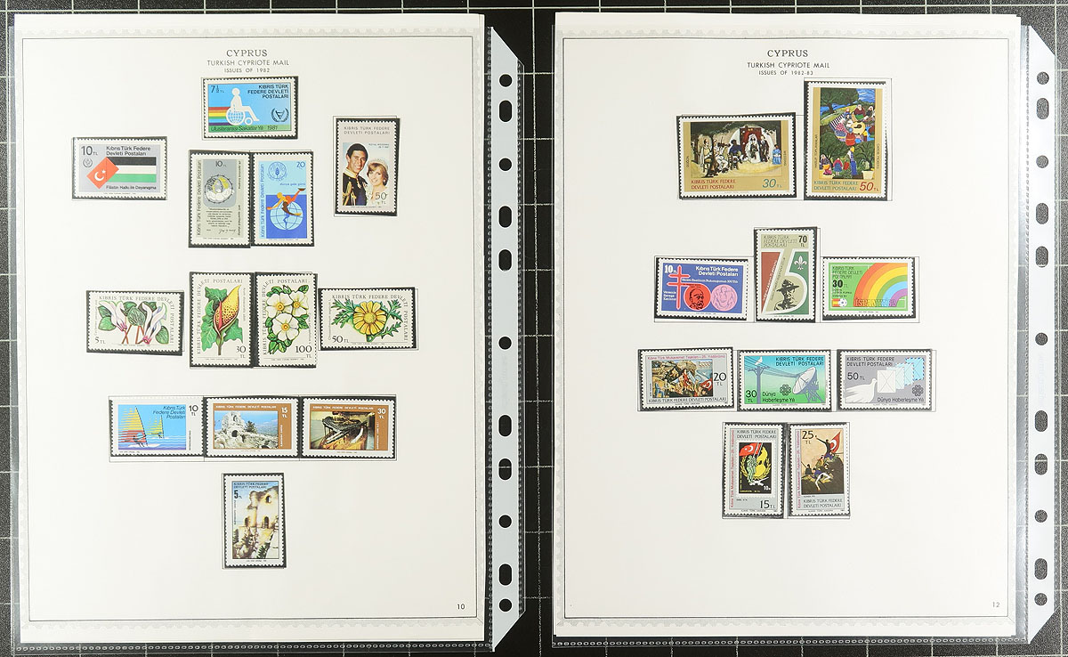Nice collection of mint Northern Cyprus, 1974-1989, containing a few hundred stamps nicely organized in hingeless mounts on Minkus album pages. The collection ranges from Scott #1/251 (99% complete in period), containing sets and a few souvenir sheets noting a few better with #s 1-7 (c.v. $89.75 total), 127 souvenir sheet ($60), along with a few items ranging from $5 to $10. 2026 Scott US$376.15 =