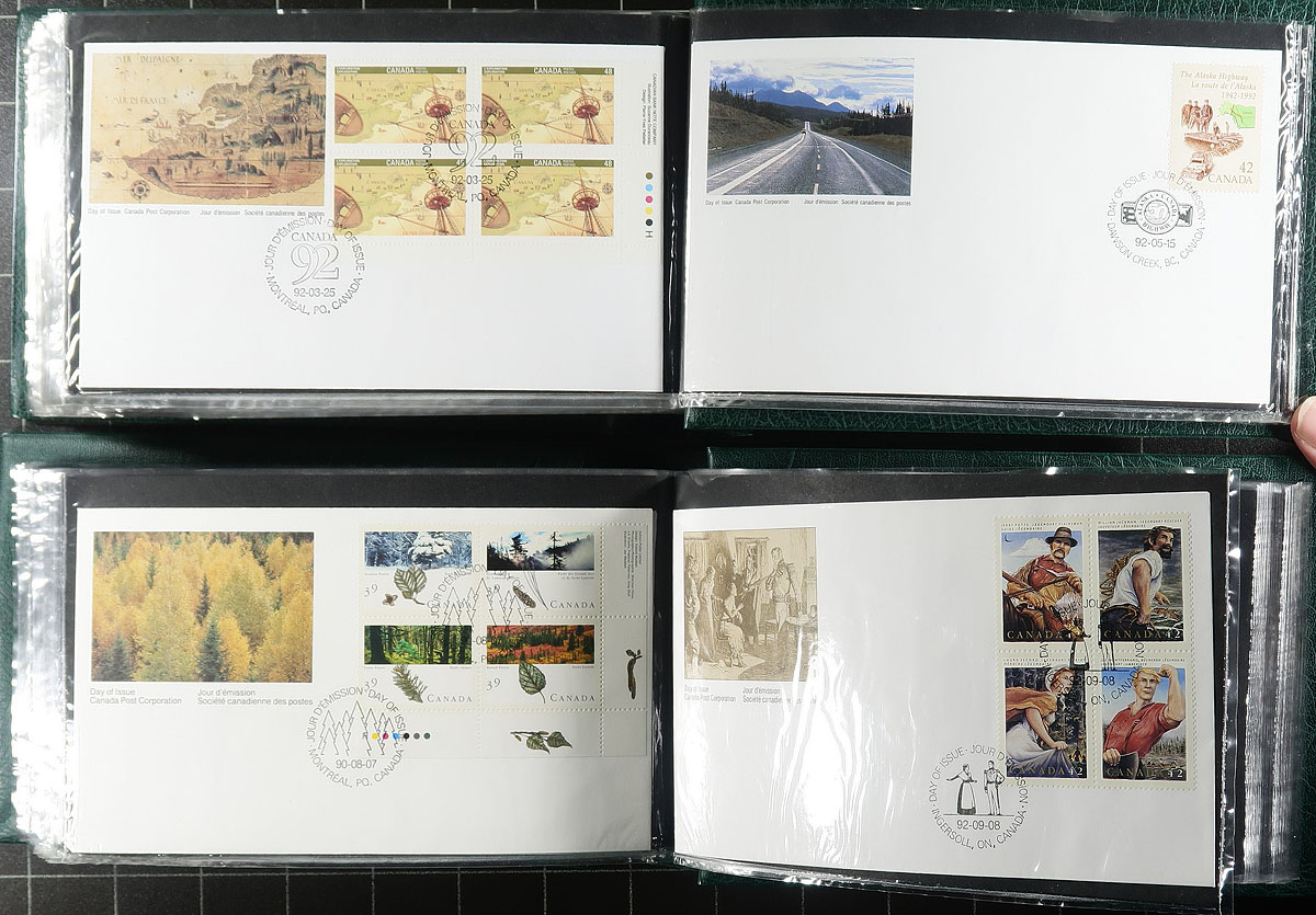 First Day Covers. Clean collection of roughly 550 first day covers, neatly organized in 6 Unisafe cover albums, 1977-1993. We note singles, sets, plate blocks, booklet panes, and high denomination frankings, with some covers cataloguing $5 and up each. A nice clean lot for collectors and dealers alike, with the albums retailing over $100 alone. Estimate =