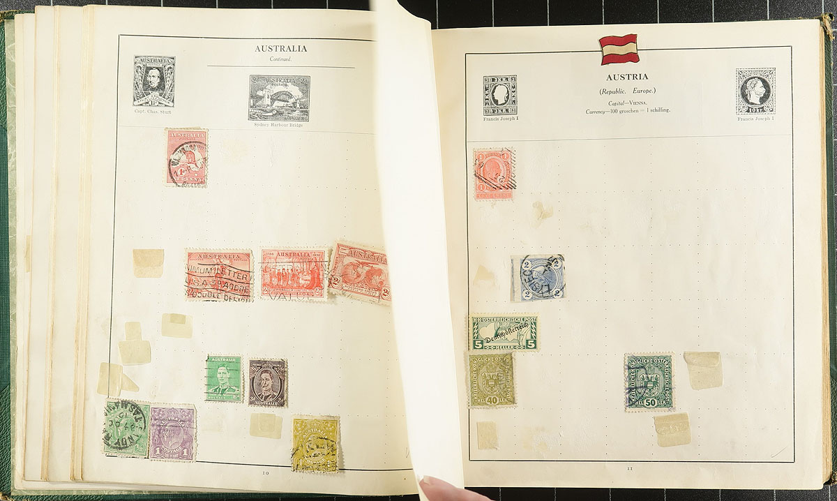 Consignment remainders of worldwide accumulations and collections filling a carton, containing a few thousands stamps in several volumes. A quick check of material indicated an old-time Centurion stamp album containing a few hundred stamps generally ranging from the 1880's to the 1950's, along with starter collections of Israel, Philippines, Yugoslavia, along with an album of Switzerland, thematic collections of soccer and Olympics, and other worldwide material. Completely uncheck for catalogue values but we suspect material ranging from $3 and under, leaving potential finds to the dedicated collector. Estimate =