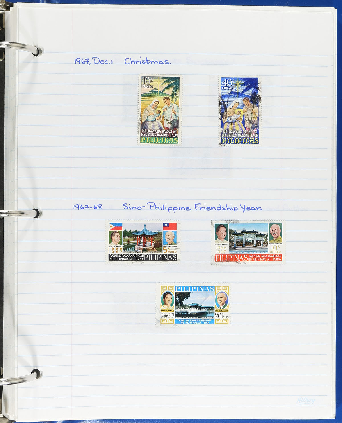 Consignment remainders of worldwide accumulations and collections filling a carton, containing a few thousands stamps in several volumes. A quick check of material indicated an old-time Centurion stamp album containing a few hundred stamps generally ranging from the 1880's to the 1950's, along with starter collections of Israel, Philippines, Yugoslavia, along with an album of Switzerland, thematic collections of soccer and Olympics, and other worldwide material. Completely uncheck for catalogue values but we suspect material ranging from $3 and under, leaving potential finds to the dedicated collector. Estimate =