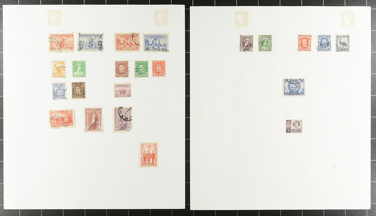 British Commonwealth. Nice old-time collection of used British Commonwealth material, 1860's-1930's, containing a few hundred stamps on 15 homemade album pages. The collection contains material from Australia (and South Australia), New Zealand, and North Borneo, noting a small selection of Kangaroos, Chalon Heads, along with postage dues, officials, and back of the book issues. A cursory check of stamps indicated a few items cataloguing $10 to $20 and up each, including Australia #45 (c.v. $100), leaving potential finds, including better postmarks to the Commonwealth collector. First time on the market in many decades, a few small faults but still a nice group. Estimate =