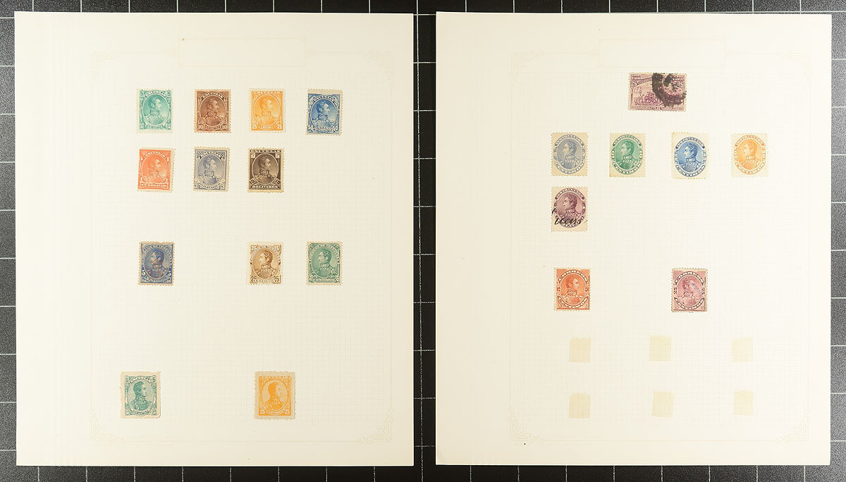 South America. Nice old-time collection of used South America material, 1860's-1930's, containing a few hundred stamps on roughly 15 homemade album pages. The collection contains material from Chile, Argentina, and Venezuela, with a spot check indicating singles, partial sets, surcharge issues, and more. Catalogue values appear to range from $3 and under, with a few cataloguing $5 and up, leaving potential finds for the dedicated collector. A nice lot from a collection that is offered for the first time in decades, a few faults with a few stamps, overall fine to very fine. Estimate =