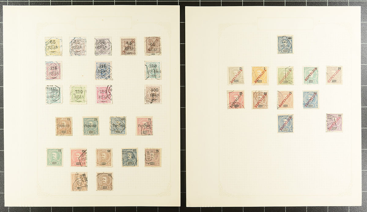 Old-time collection of used Portal and Colonies, 1870's-1930's, containing a few hundred stamps on roughly 15 homemade album pages. The collection contains material from Portugal, Portuguese India, Lourenco Marques, and perhaps a few others. A cursory check indicated singles, partial sets, and back of the book items, with a few stamps cataloguing $5 to $10 each, leaving potential finds for the dedicated collector. A nice little collection that is being offered for the first time in decades, a few small to noticeable faults with a few stamps, still a nice fine lot. Estimate =