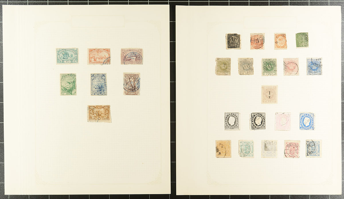 Old-time collection of used Portal and Colonies, 1870's-1930's, containing a few hundred stamps on roughly 15 homemade album pages. The collection contains material from Portugal, Portuguese India, Lourenco Marques, and perhaps a few others. A cursory check indicated singles, partial sets, and back of the book items, with a few stamps cataloguing $5 to $10 each, leaving potential finds for the dedicated collector. A nice little collection that is being offered for the first time in decades, a few small to noticeable faults with a few stamps, still a nice fine lot. Estimate =