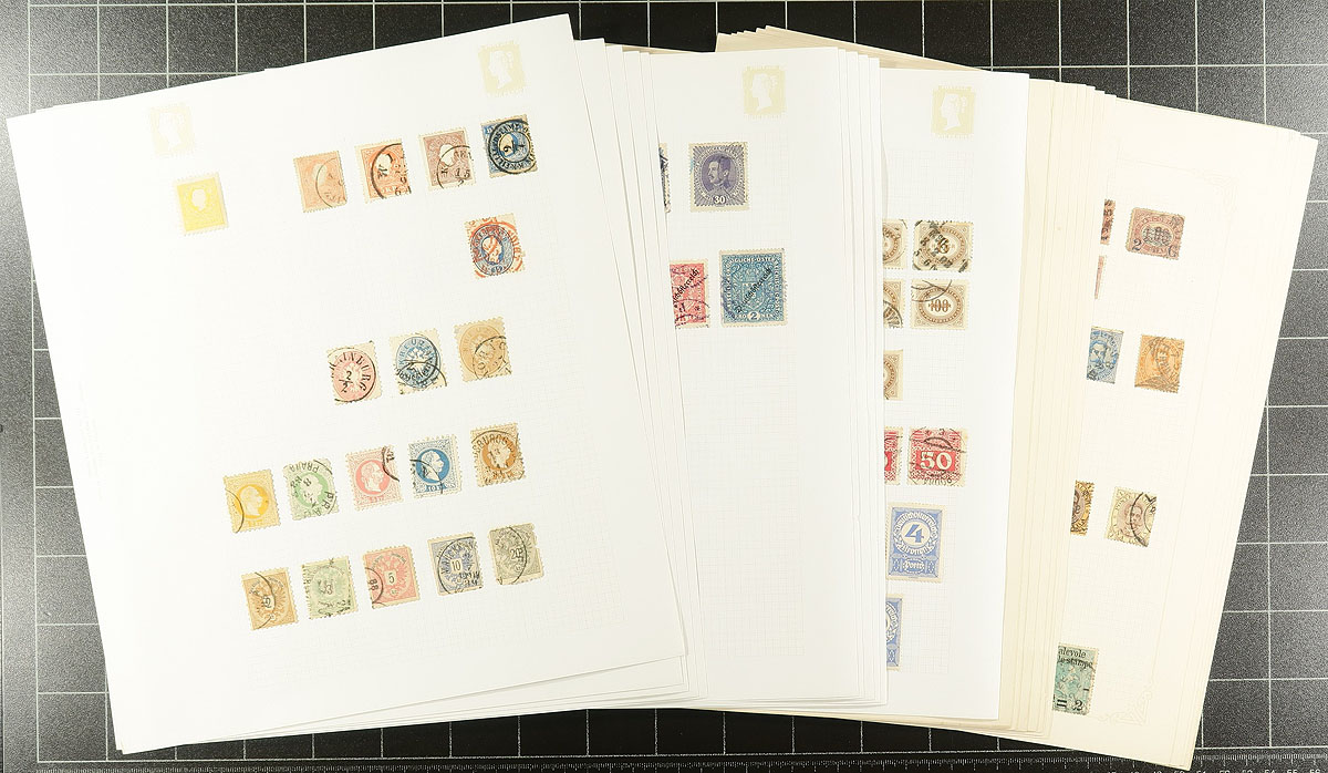 Europe- Very nice old-time collection of primarily used Europe material, 1850's-1930's, containing many hundreds of stamps on roughly 25 homemade album pages. The collection primarily contains Austria, Germany and a few States, Italy and a few States, noting several classic issues, along with a few partial sets, back of the book material including occupations, newspaper stamps and more. A cursory check indicated some material cataloguing $10 to $20 each, leaving possible finds, including better postmarks to the dedicated collector. This collection is being offered for the first time in decades, a few small faults with a few stamps, still an overall fine to very fine group. Estimate =