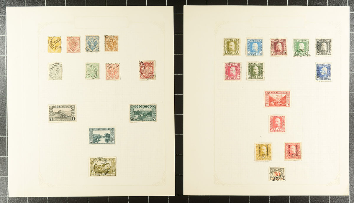 Europe- Very nice old-time collection of primarily used Europe material, 1850's-1930's, containing many hundreds of stamps on roughly 25 homemade album pages. The collection primarily contains Austria, Germany and a few States, Italy and a few States, noting several classic issues, along with a few partial sets, back of the book material including occupations, newspaper stamps and more. A cursory check indicated some material cataloguing $10 to $20 each, leaving possible finds, including better postmarks to the dedicated collector. This collection is being offered for the first time in decades, a few small faults with a few stamps, still an overall fine to very fine group. Estimate =