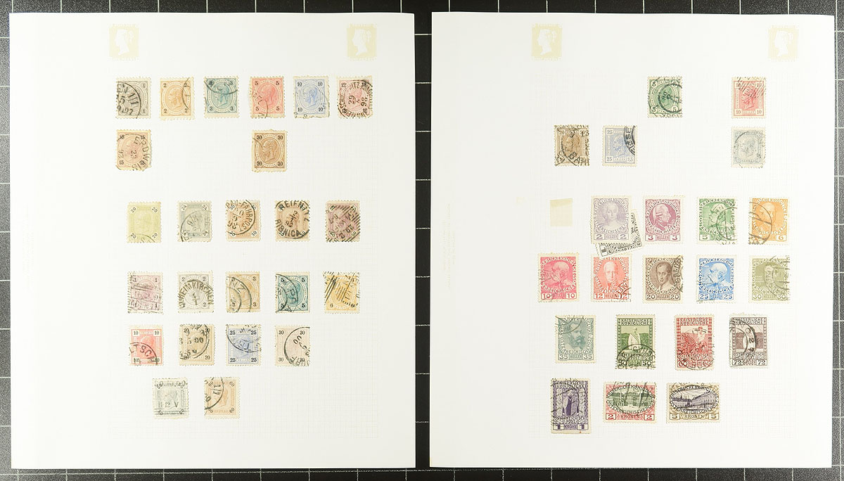 Europe- Very nice old-time collection of primarily used Europe material, 1850's-1930's, containing many hundreds of stamps on roughly 25 homemade album pages. The collection primarily contains Austria, Germany and a few States, Italy and a few States, noting several classic issues, along with a few partial sets, back of the book material including occupations, newspaper stamps and more. A cursory check indicated some material cataloguing $10 to $20 each, leaving possible finds, including better postmarks to the dedicated collector. This collection is being offered for the first time in decades, a few small faults with a few stamps, still an overall fine to very fine group. Estimate =