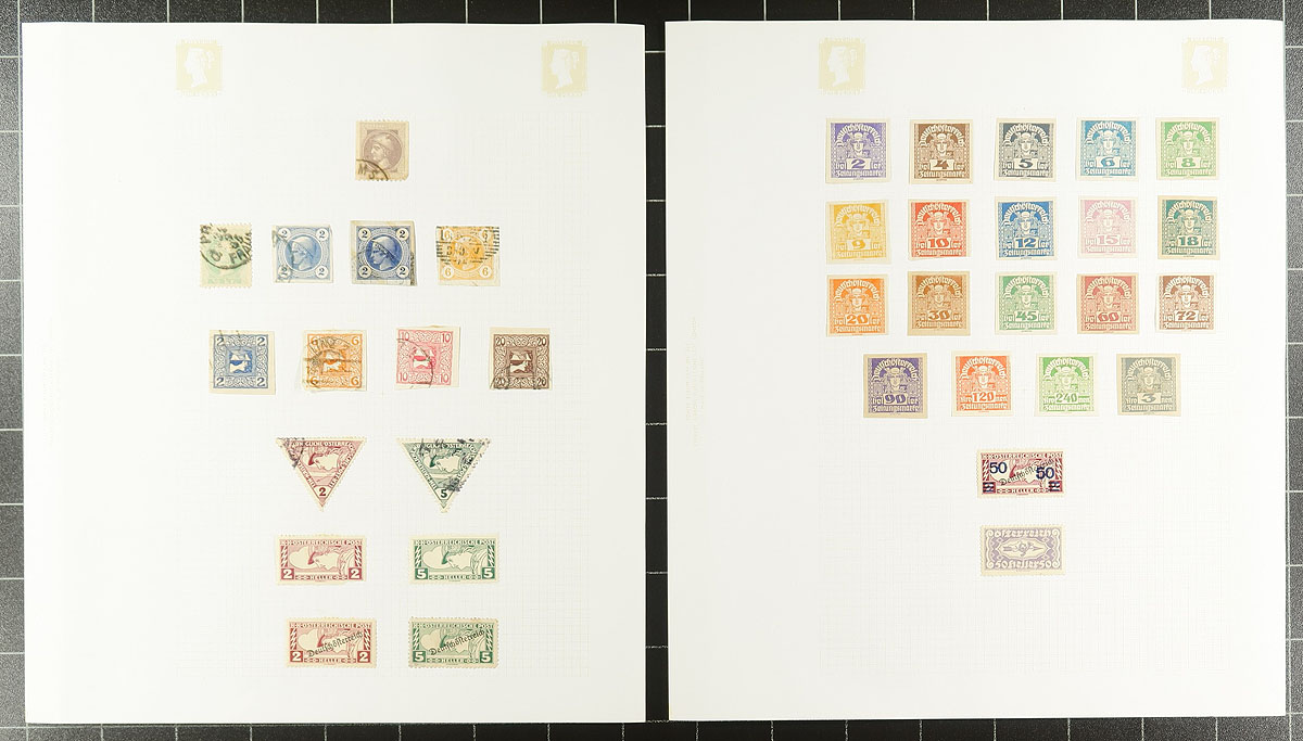 Europe- Very nice old-time collection of primarily used Europe material, 1850's-1930's, containing many hundreds of stamps on roughly 25 homemade album pages. The collection primarily contains Austria, Germany and a few States, Italy and a few States, noting several classic issues, along with a few partial sets, back of the book material including occupations, newspaper stamps and more. A cursory check indicated some material cataloguing $10 to $20 each, leaving possible finds, including better postmarks to the dedicated collector. This collection is being offered for the first time in decades, a few small faults with a few stamps, still an overall fine to very fine group. Estimate =