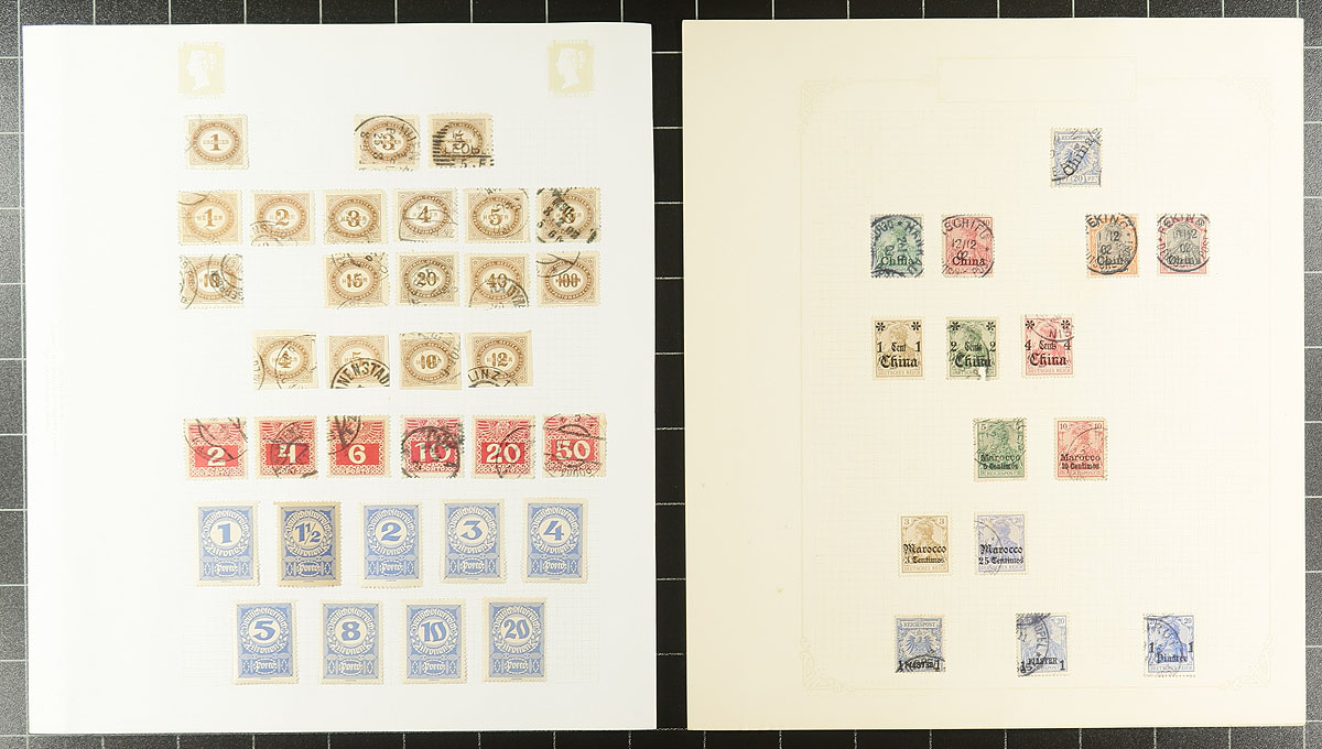 Europe- Very nice old-time collection of primarily used Europe material, 1850's-1930's, containing many hundreds of stamps on roughly 25 homemade album pages. The collection primarily contains Austria, Germany and a few States, Italy and a few States, noting several classic issues, along with a few partial sets, back of the book material including occupations, newspaper stamps and more. A cursory check indicated some material cataloguing $10 to $20 each, leaving possible finds, including better postmarks to the dedicated collector. This collection is being offered for the first time in decades, a few small faults with a few stamps, still an overall fine to very fine group. Estimate =