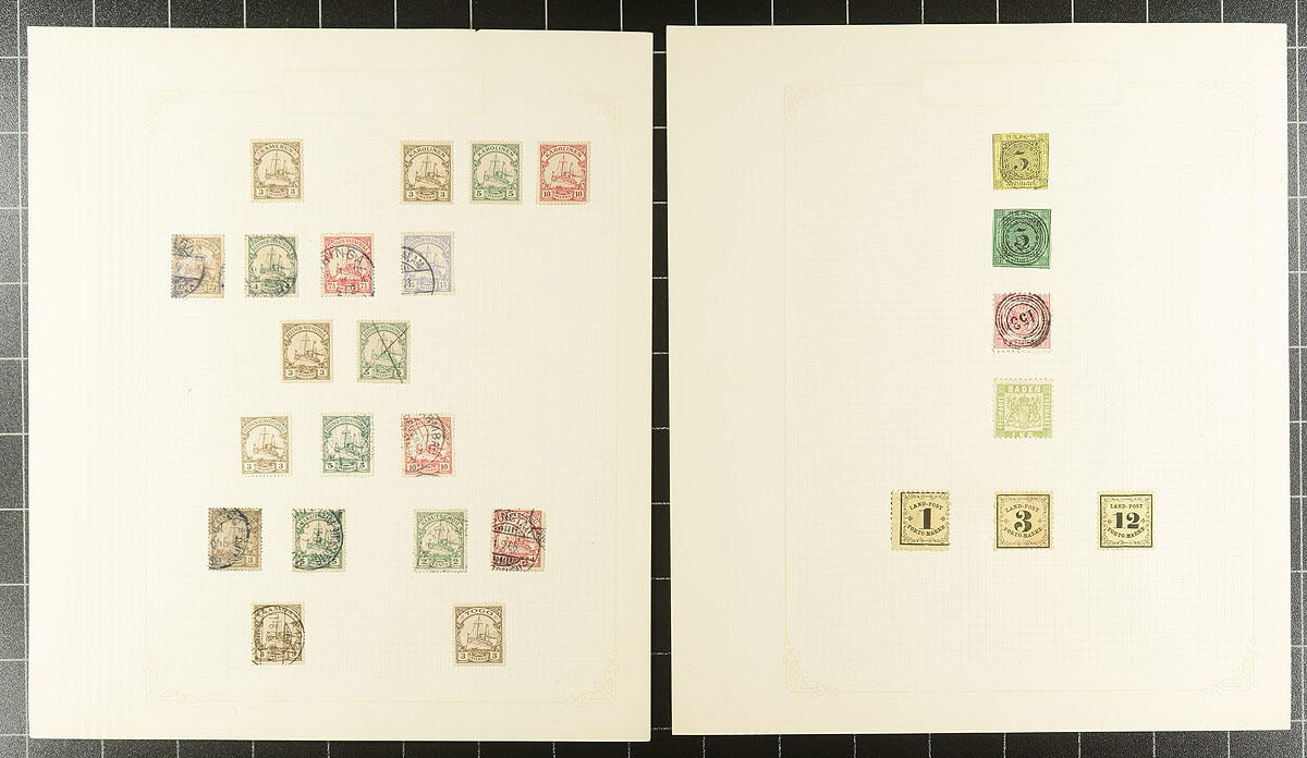 Europe- Very nice old-time collection of primarily used Europe material, 1850's-1930's, containing many hundreds of stamps on roughly 25 homemade album pages. The collection primarily contains Austria, Germany and a few States, Italy and a few States, noting several classic issues, along with a few partial sets, back of the book material including occupations, newspaper stamps and more. A cursory check indicated some material cataloguing $10 to $20 each, leaving possible finds, including better postmarks to the dedicated collector. This collection is being offered for the first time in decades, a few small faults with a few stamps, still an overall fine to very fine group. Estimate =