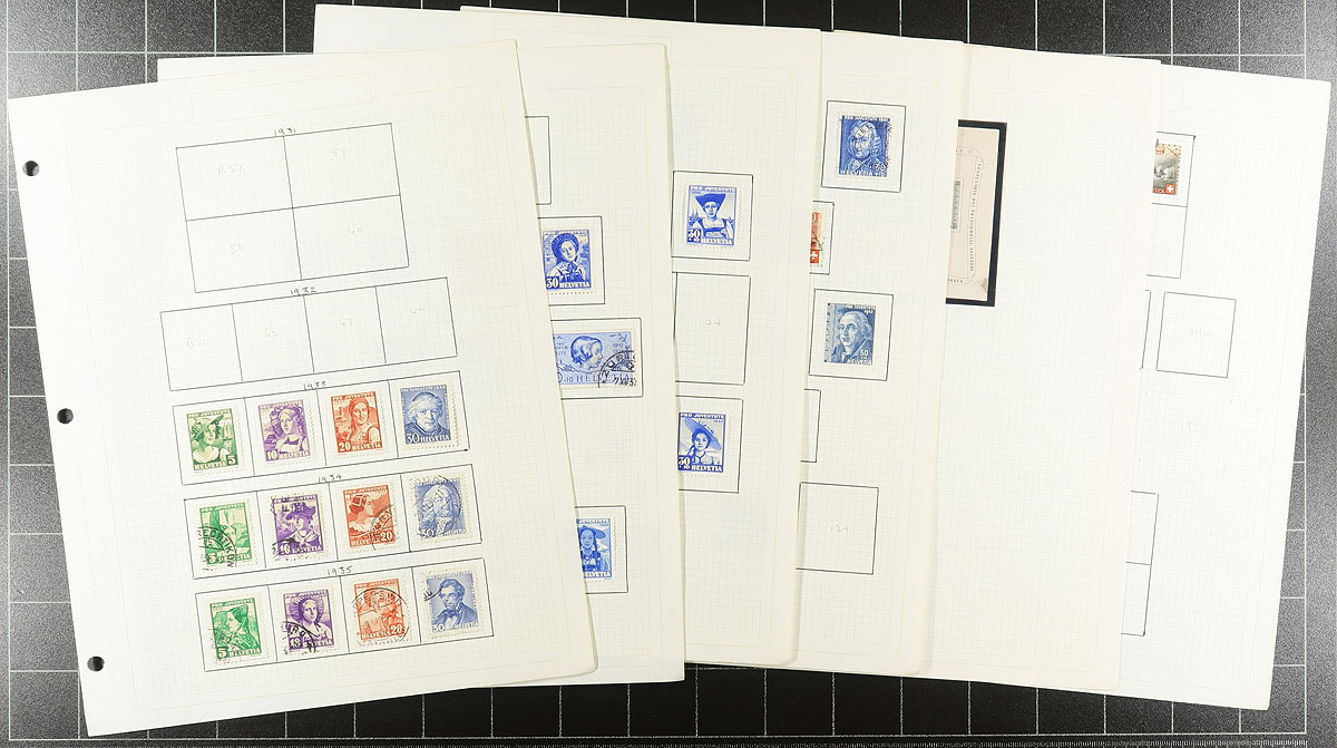 Comprehensive mint (mostly Never Hinged) collection of Post-WWII up to 2005 issues, nearly arranged in mounts on pages, and later stockpages within a binder. Looks to be about 90% full, missing the key-values, but includes "back of the book". Substantial face value alone, which should add up to 400+ Swiss Francs (over $700.00 CDN). Only a handful of earlier material here Lightly Hinged, rest Never Hinged. Value adds up quickly. Estimate =