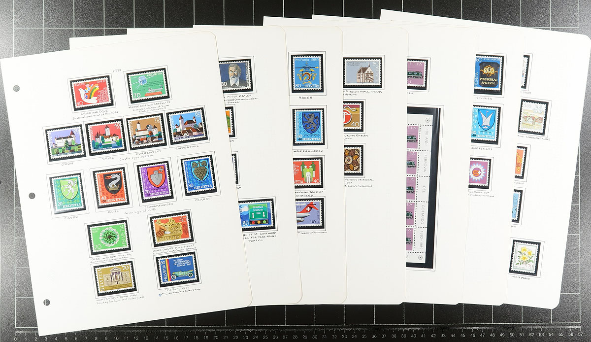 Comprehensive mint (mostly Never Hinged) collection of Post-WWII up to 2005 issues, nearly arranged in mounts on pages, and later stockpages within a binder. Looks to be about 90% full, missing the key-values, but includes "back of the book". Substantial face value alone, which should add up to 400+ Swiss Francs (over $700.00 CDN). Only a handful of earlier material here Lightly Hinged, rest Never Hinged. Value adds up quickly. Estimate =