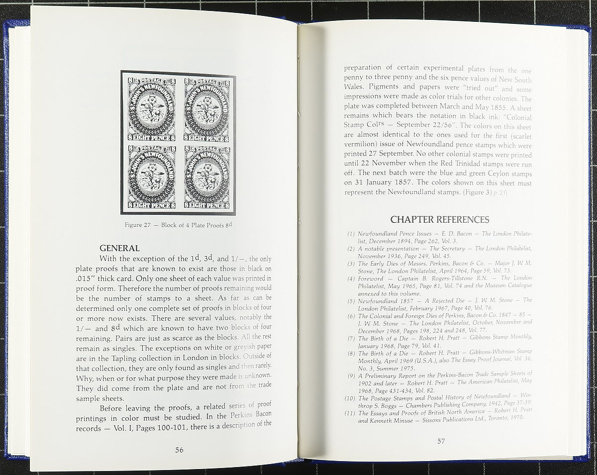 Literature. A trio of important Newfoundland philatelic reference books including "The Pence Issues of Newfoundland 1857-1866" (Pratt, 1982 hardcover, Greene Foundation published), "The Encyclopedia of British Empire Postage Stamps, Part IV, Newfoundland and British Columbia" (Robson Lowe) and "Newfoundland Air Mails 1919-1939" (Dalwick and Harmer, 1953 hardcover). All very relevant, and tough to find. Estimate =