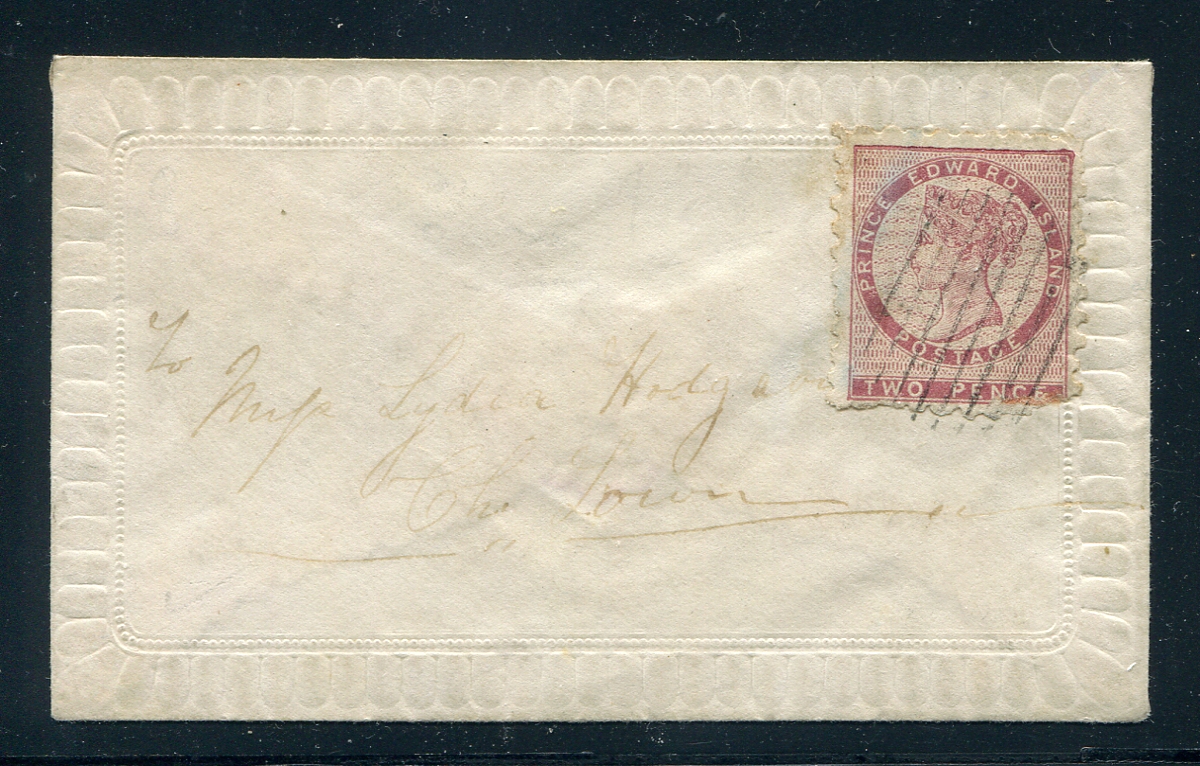 Used example on small "ladies" cover of the 1861 issue 2p dull rose, perf 9, mailed June 11th 1862 to "Ch'Town". Some usual perforation faults, but a tough stamp to find as a single, let alone used on cover. 2025-2026 Unitrade =