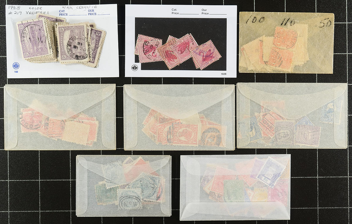 Accumulation of various Australian States stamps, with a couple hundred in "102" cards or glassines. Largely unchecked, perfect for the postmark hound. Estimate =