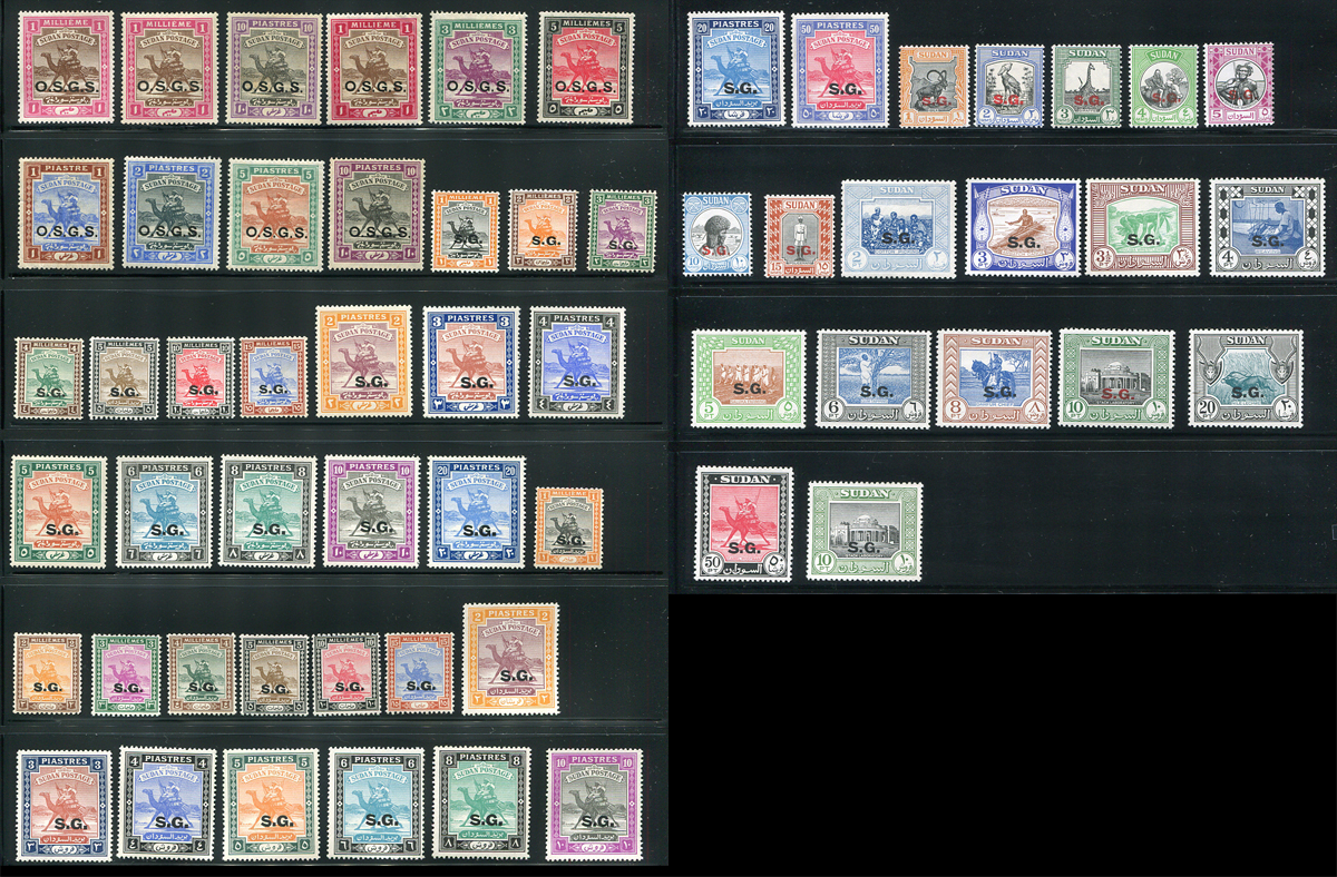 A complete offering of the official "OSGS" and "SG" overprints on Sudanese stamps up to 1958. Lots of the iconic "Camel Post" design and the 1951 definitives. All fresh mint, expect all to be hinged, a few with small hinge remnants. Bonus is #O1b (overprint with round "periods"). 2025 Scott US$446.35 =