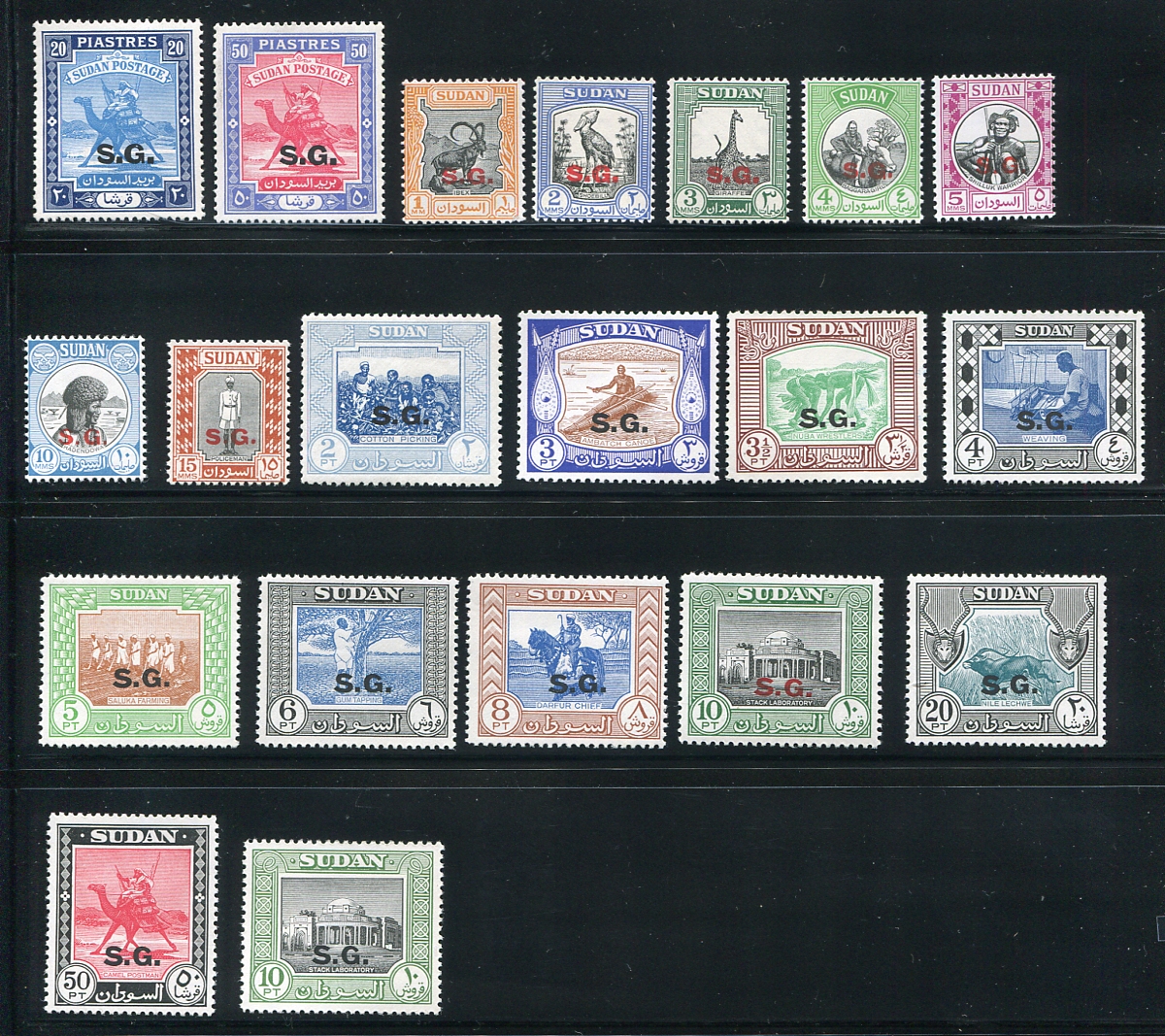 A complete offering of the official "OSGS" and "SG" overprints on Sudanese stamps up to 1958. Lots of the iconic "Camel Post" design and the 1951 definitives. All fresh mint, expect all to be hinged, a few with small hinge remnants. Bonus is #O1b (overprint with round "periods"). 2025 Scott US$446.35 =