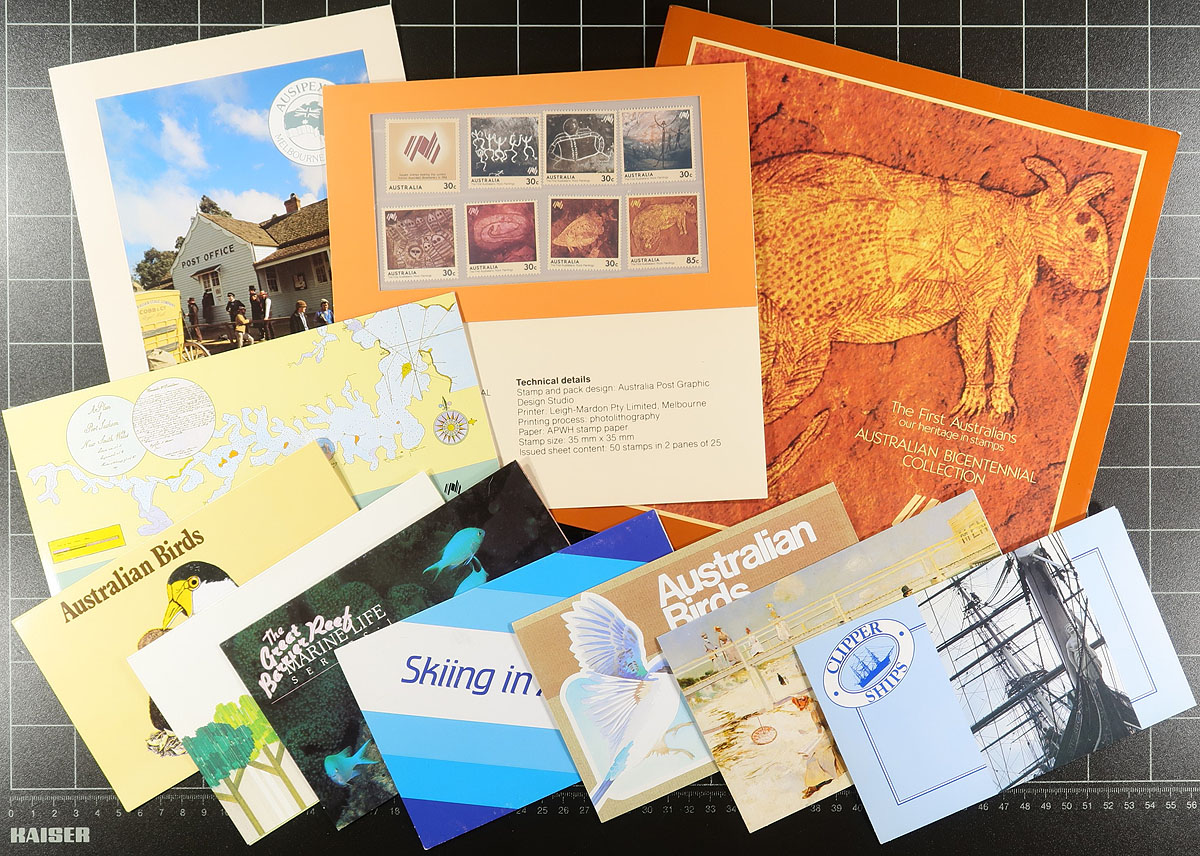 Consignment remainders of mint Australia, 1932-1993, containing many hundreds of stamps on several album pages and many thematic packs. The collection is primarily hinged onto pages ranging from Scott #130/1335, containing singles and sets, with the balance of the lot containing many never hinged sets from post office presentation packs. Owner's 2014 Scott catalogue value for the lot totals US$586.00, face value alone is over AUD$300.00. A nice clean lot from this popular collecting region, overall fine to very fine. Estimate =