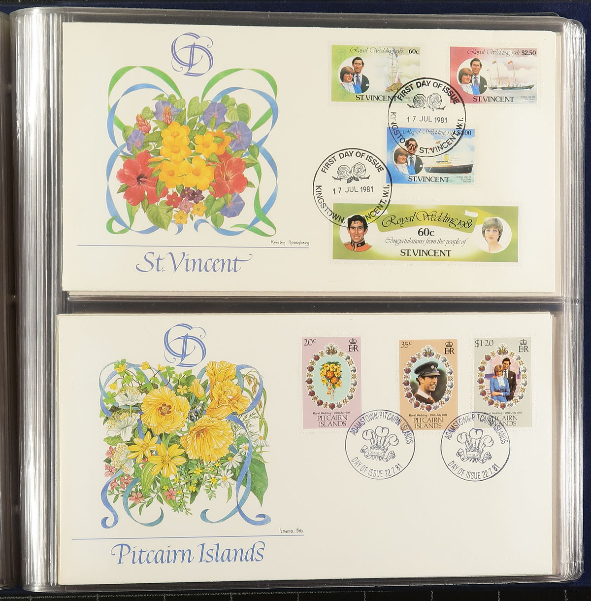 Thematic Collections- Group of 6 collections containing a few hundred nicely arranged covers, and several stamp sets from the following collections: The Royal Wedding Philatelic Panels Collection; The 1981 Royal Wedding in 2 volumes; The Coronation Cover collection in 2 volumes; The Commonwealth Collection of Silver Jubilee First Day Covers collection. A nice clean group for all collectors. Estimate =