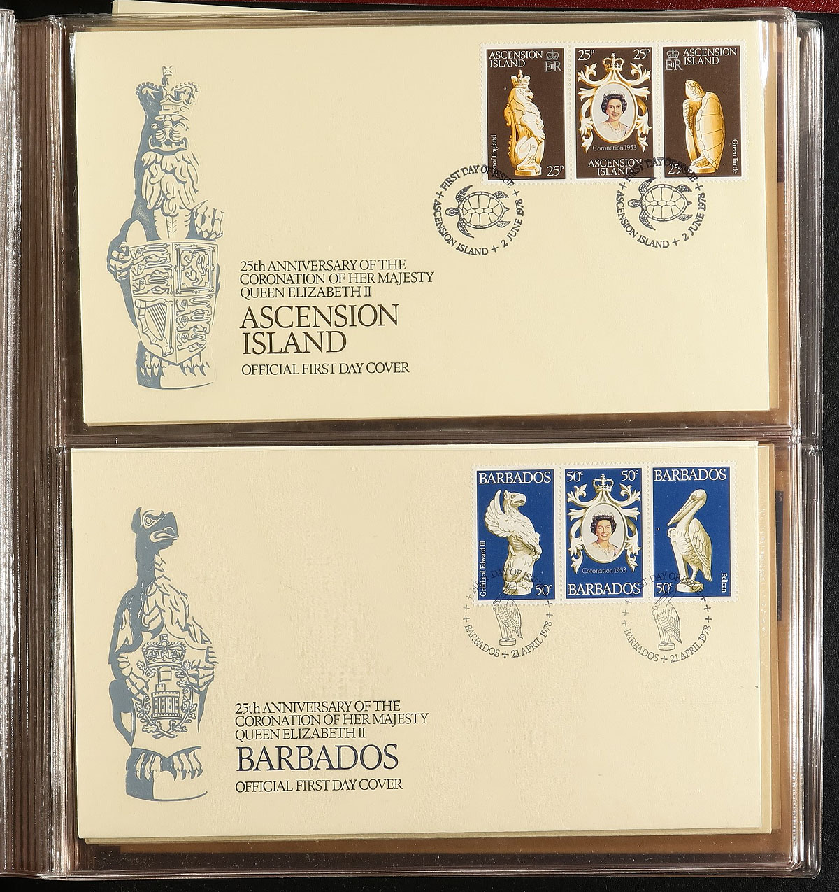 Thematic Collections- Group of 6 collections containing a few hundred nicely arranged covers, and several stamp sets from the following collections: The Royal Wedding Philatelic Panels Collection; The 1981 Royal Wedding in 2 volumes; The Coronation Cover collection in 2 volumes; The Commonwealth Collection of Silver Jubilee First Day Covers collection. A nice clean group for all collectors. Estimate =