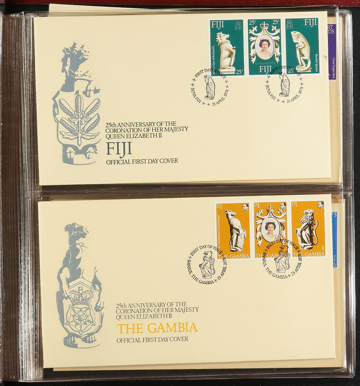 Thematic Collections- Group of 6 collections containing a few hundred nicely arranged covers, and several stamp sets from the following collections: The Royal Wedding Philatelic Panels Collection; The 1981 Royal Wedding in 2 volumes; The Coronation Cover collection in 2 volumes; The Commonwealth Collection of Silver Jubilee First Day Covers collection. A nice clean group for all collectors. Estimate =