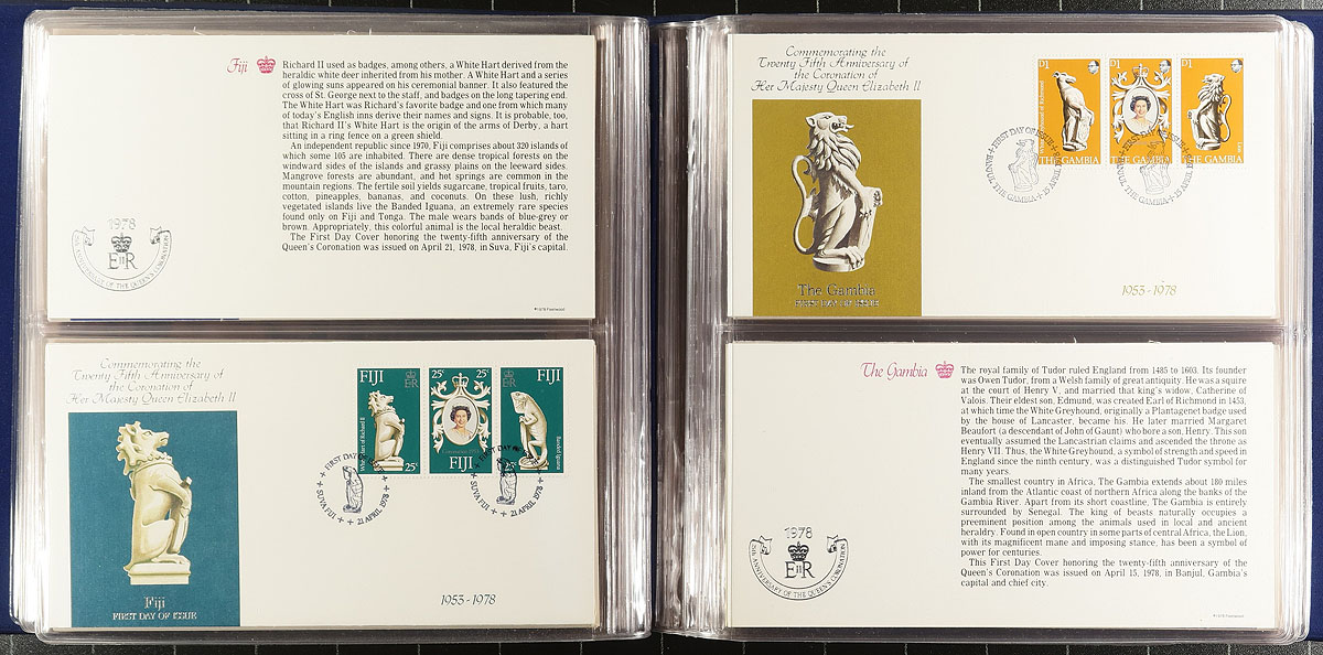 Thematic Collections- Group of 6 collections containing a few hundred nicely arranged covers, and several stamp sets from the following collections: The Royal Wedding Philatelic Panels Collection; The 1981 Royal Wedding in 2 volumes; The Coronation Cover collection in 2 volumes; The Commonwealth Collection of Silver Jubilee First Day Covers collection. A nice clean group for all collectors. Estimate =