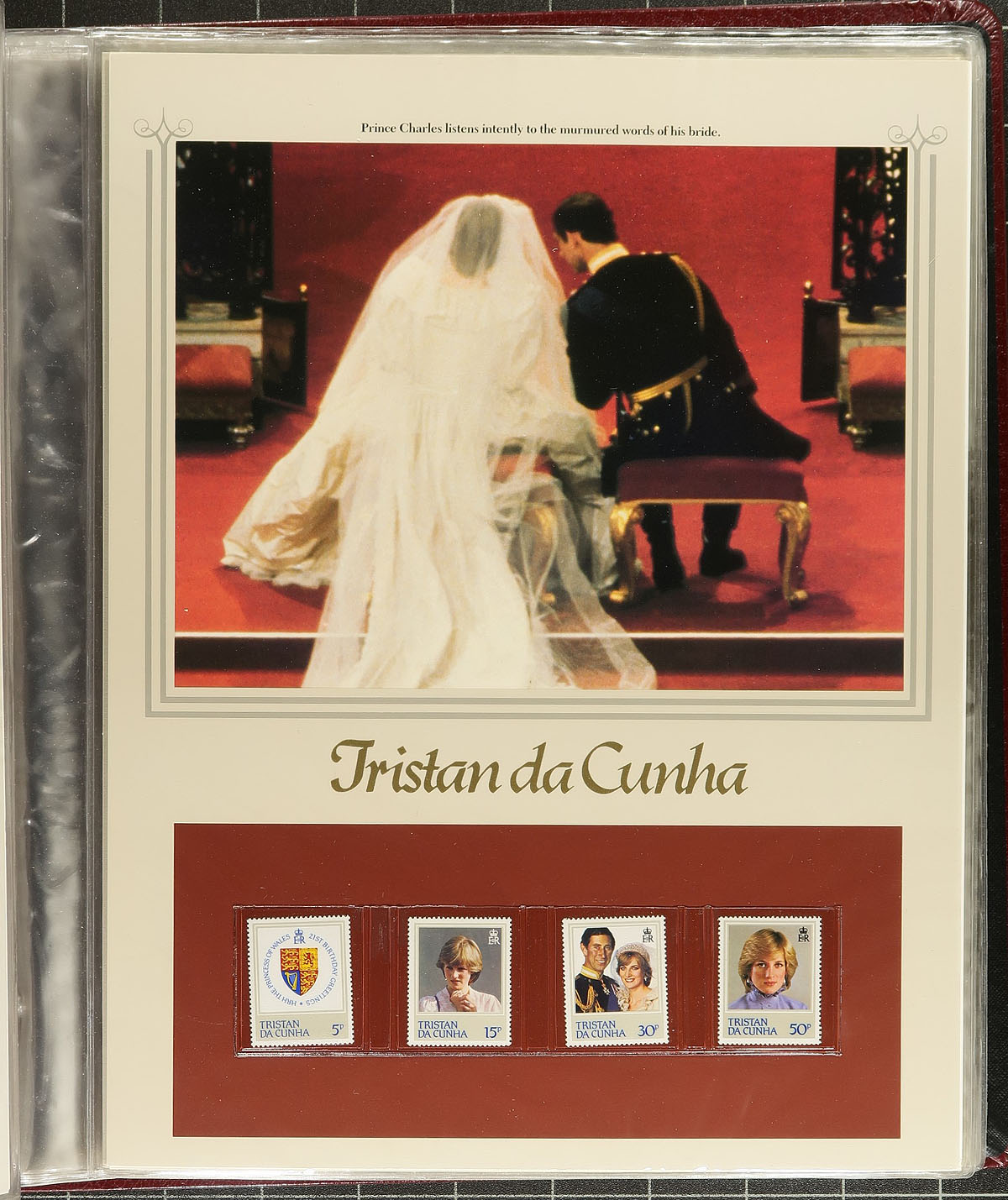 Thematic Collections- Group of 6 collections containing a few hundred nicely arranged covers, and several stamp sets from the following collections: The Royal Wedding Philatelic Panels Collection; The 1981 Royal Wedding in 2 volumes; The Coronation Cover collection in 2 volumes; The Commonwealth Collection of Silver Jubilee First Day Covers collection. A nice clean group for all collectors. Estimate =