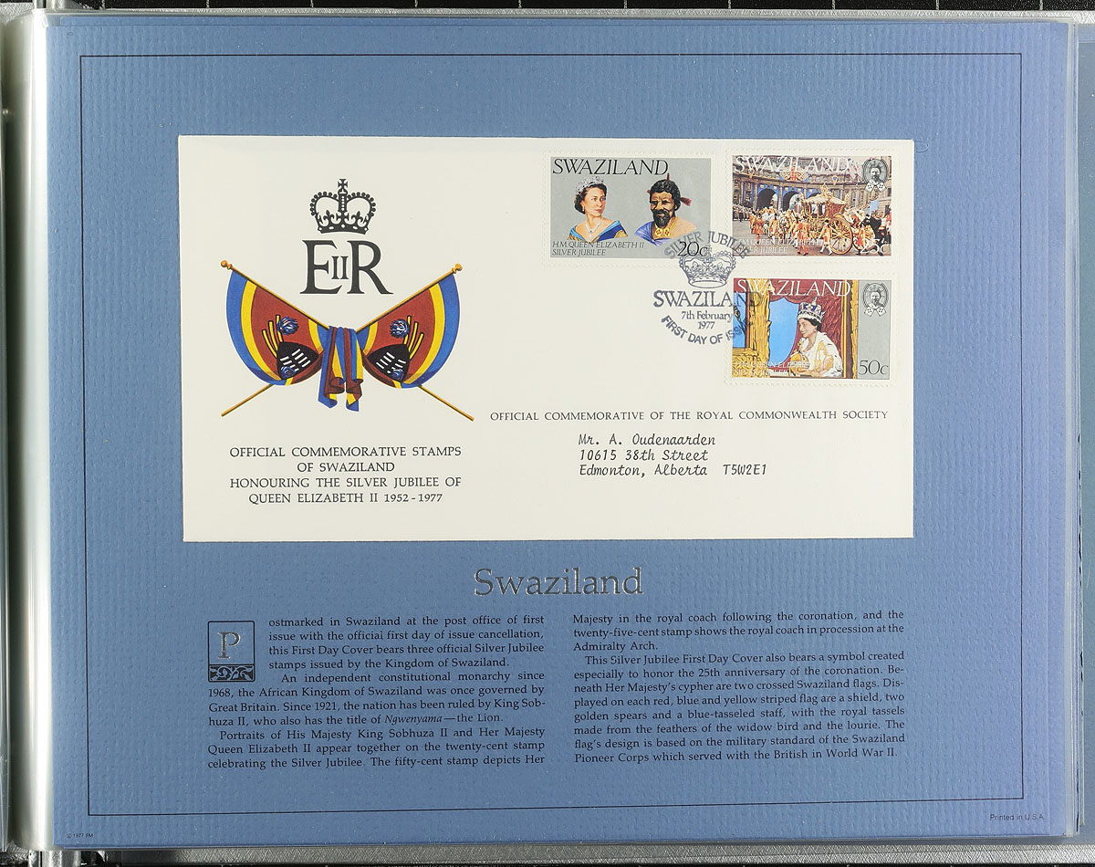 Thematic Collections- Group of 6 collections containing a few hundred nicely arranged covers, and several stamp sets from the following collections: The Royal Wedding Philatelic Panels Collection; The 1981 Royal Wedding in 2 volumes; The Coronation Cover collection in 2 volumes; The Commonwealth Collection of Silver Jubilee First Day Covers collection. A nice clean group for all collectors. Estimate =