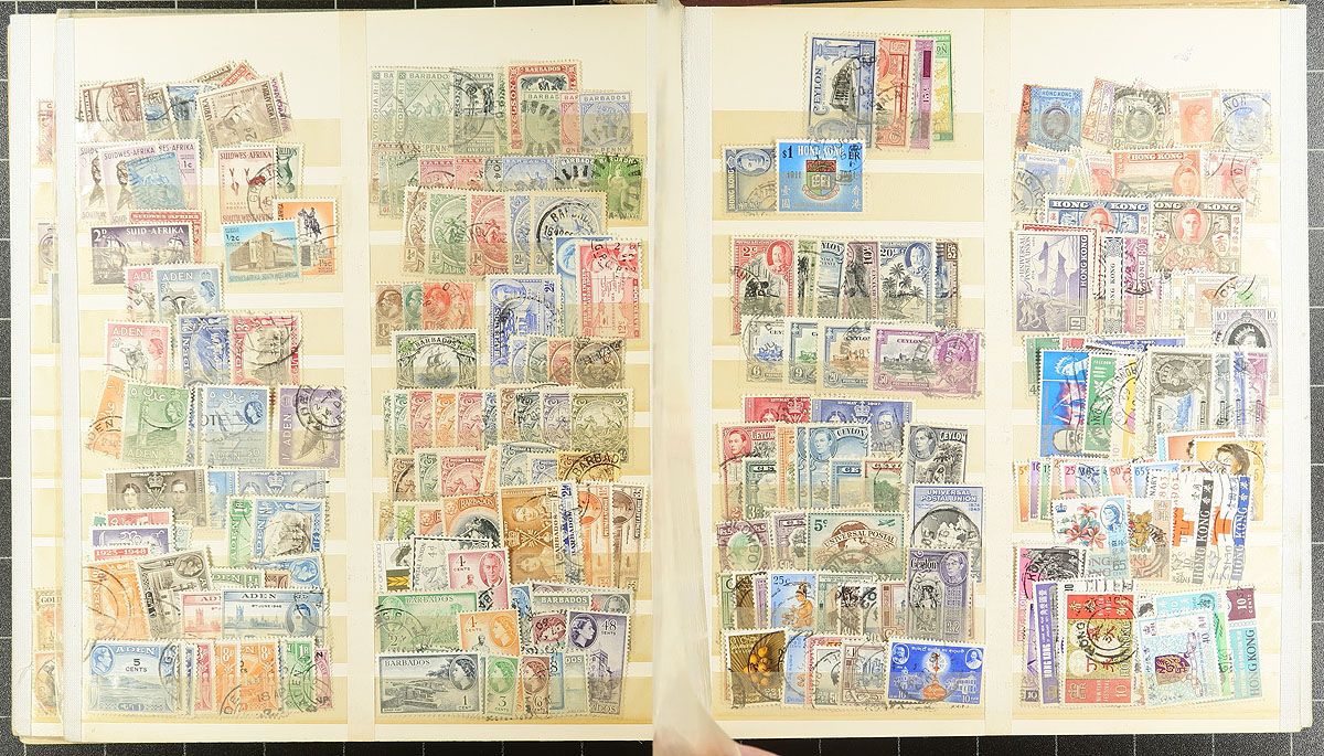 Lovely collection of used British Commonwealth material, 1880's-1960's, containing over 1,000 stamps in 8 double sided stock pages. There is a lot of nice material here, basically two countries per page with strength in West Indies, British Asia, and Africa, noting Bermuda, Bahamas, Hong Kong, Gibraltar, British Guiana, and more. Strength in post 1900 to early Elizabethan issues, including omnibus sets, etc., with some material cataloguing $5 to $20 each. A lovely lot for the British Commonwealth collector with all pages photographed online. Overall fine to very fine. Estimate =