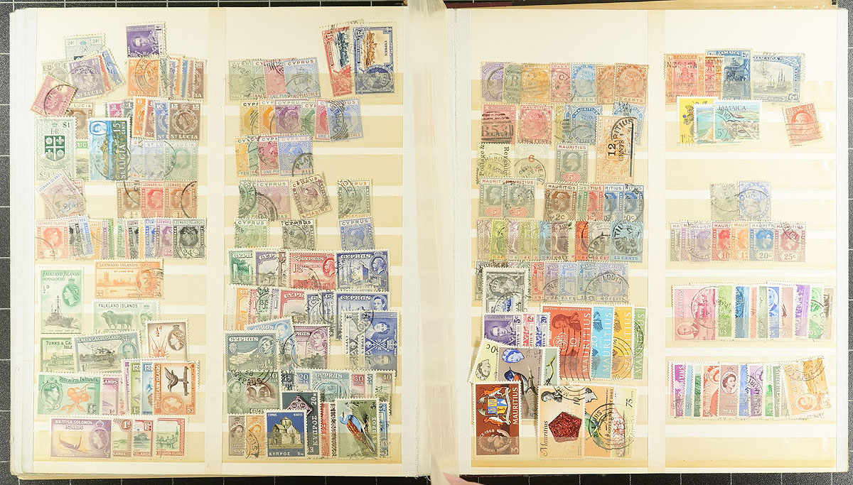 Lovely collection of used British Commonwealth material, 1880's-1960's, containing over 1,000 stamps in 8 double sided stock pages. There is a lot of nice material here, basically two countries per page with strength in West Indies, British Asia, and Africa, noting Bermuda, Bahamas, Hong Kong, Gibraltar, British Guiana, and more. Strength in post 1900 to early Elizabethan issues, including omnibus sets, etc., with some material cataloguing $5 to $20 each. A lovely lot for the British Commonwealth collector with all pages photographed online. Overall fine to very fine. Estimate =