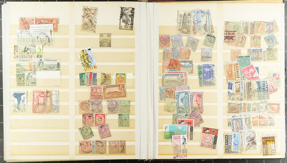 Lovely collection of used British Commonwealth material, 1880's-1960's, containing over 1,000 stamps in 8 double sided stock pages. There is a lot of nice material here, basically two countries per page with strength in West Indies, British Asia, and Africa, noting Bermuda, Bahamas, Hong Kong, Gibraltar, British Guiana, and more. Strength in post 1900 to early Elizabethan issues, including omnibus sets, etc., with some material cataloguing $5 to $20 each. A lovely lot for the British Commonwealth collector with all pages photographed online. Overall fine to very fine. Estimate =