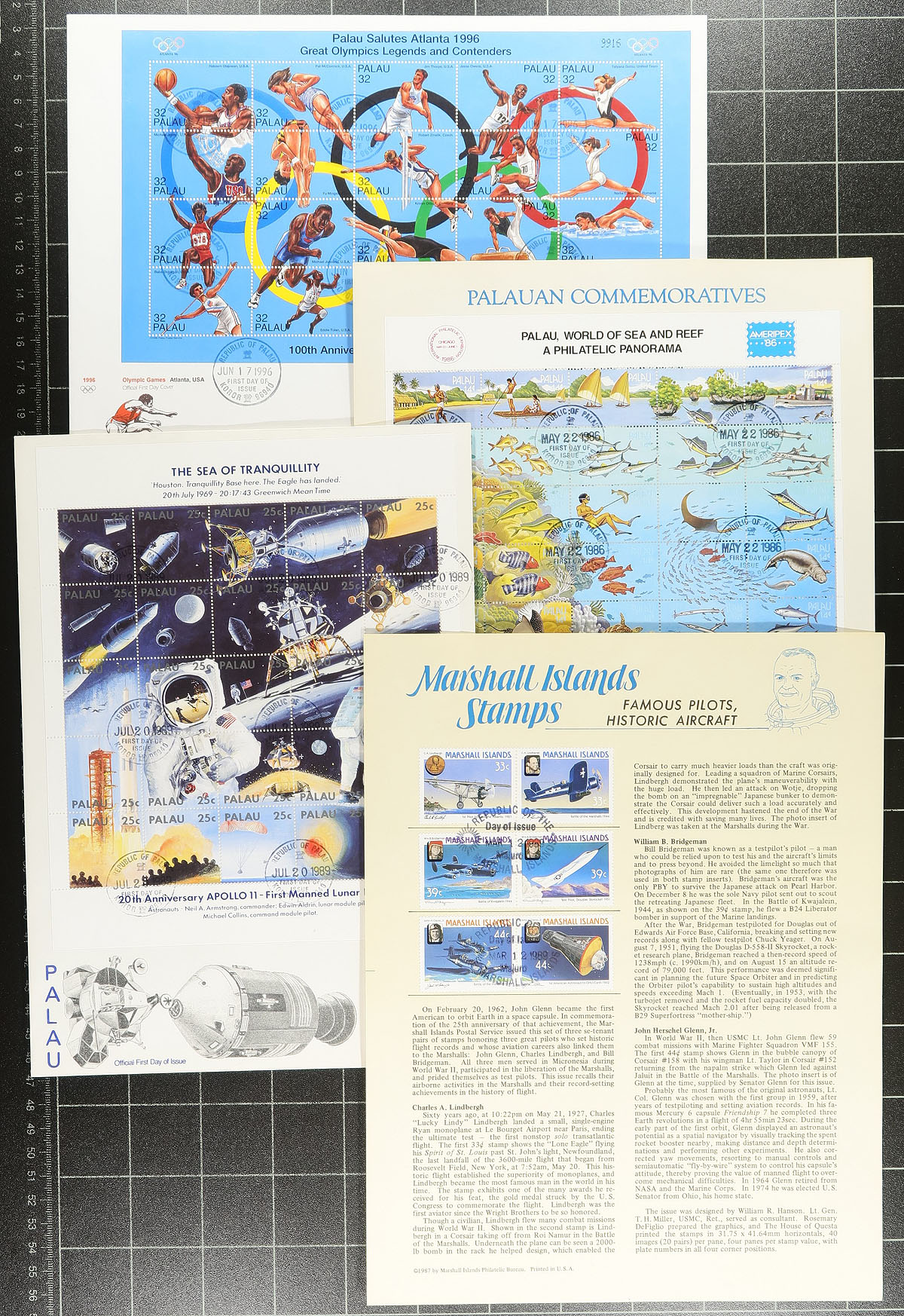 Group of roughly 400 commemorative or first day covers, generally ranging from the 1960's to the 1980's, with better representation from Canada, Great Britain, Pacific Islands, and a few from the West Indies. We note several colourful frankings with singles, sets, and a few souvenir sheets (mostly on larger sized envelopes). Ideal for the topical and thematic collector as we encountered many suitable subjects. Nice lot for collectors and dealers alike. Estimate =