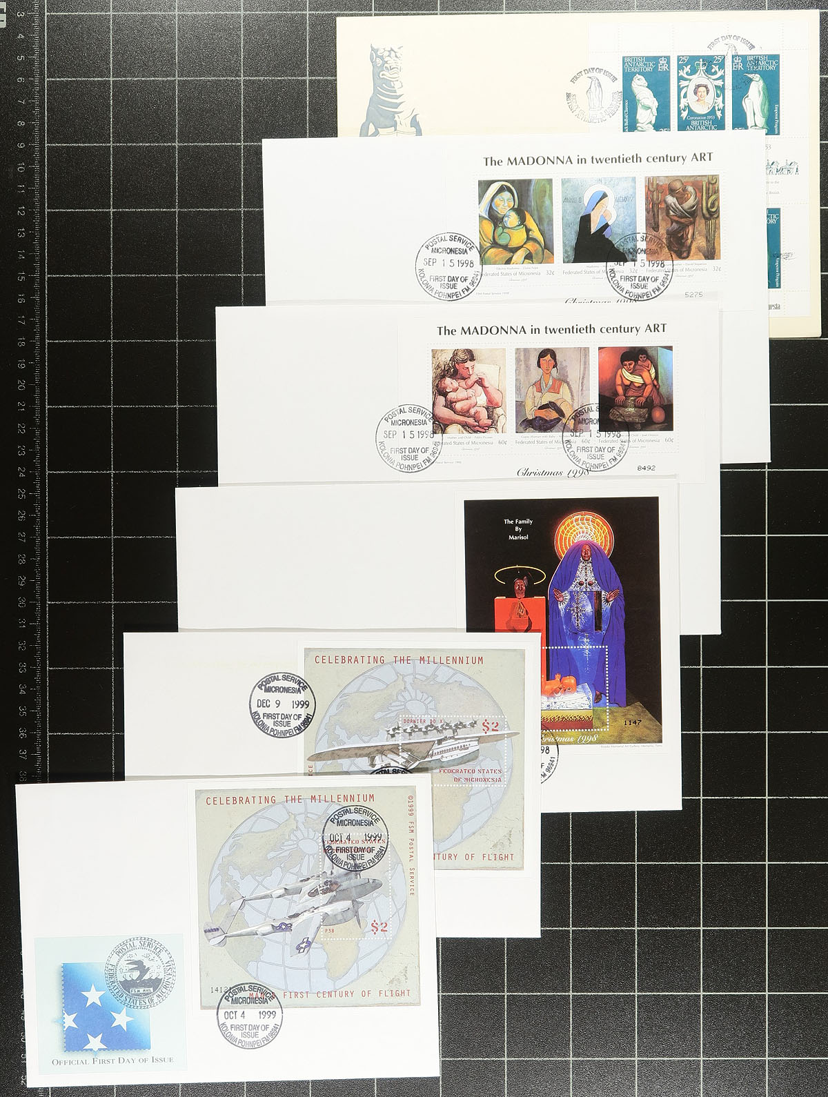 Group of roughly 400 commemorative or first day covers, generally ranging from the 1960's to the 1980's, with better representation from Canada, Great Britain, Pacific Islands, and a few from the West Indies. We note several colourful frankings with singles, sets, and a few souvenir sheets (mostly on larger sized envelopes). Ideal for the topical and thematic collector as we encountered many suitable subjects. Nice lot for collectors and dealers alike. Estimate =
