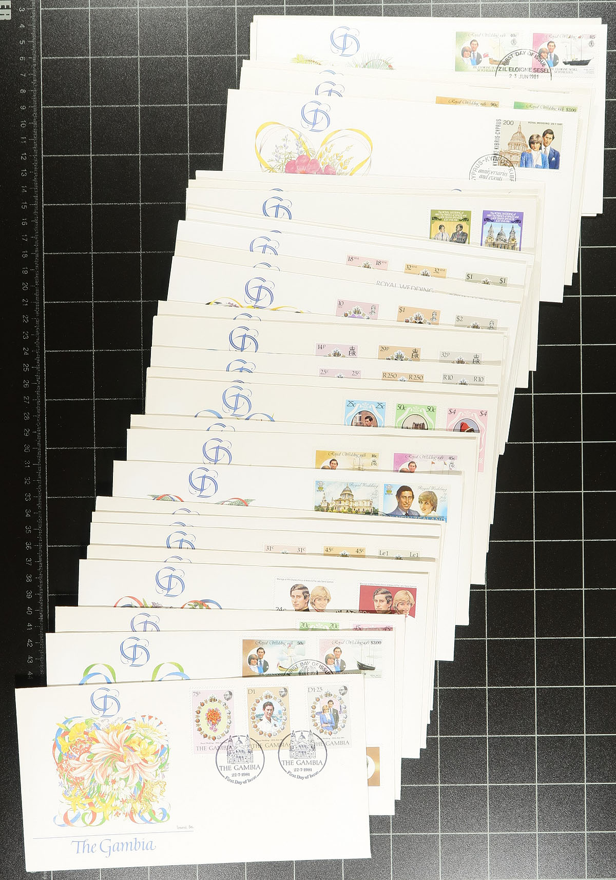 Group of roughly 400 commemorative or first day covers, generally ranging from the 1960's to the 1980's, with better representation from Canada, Great Britain, Pacific Islands, and a few from the West Indies. We note several colourful frankings with singles, sets, and a few souvenir sheets (mostly on larger sized envelopes). Ideal for the topical and thematic collector as we encountered many suitable subjects. Nice lot for collectors and dealers alike. Estimate =