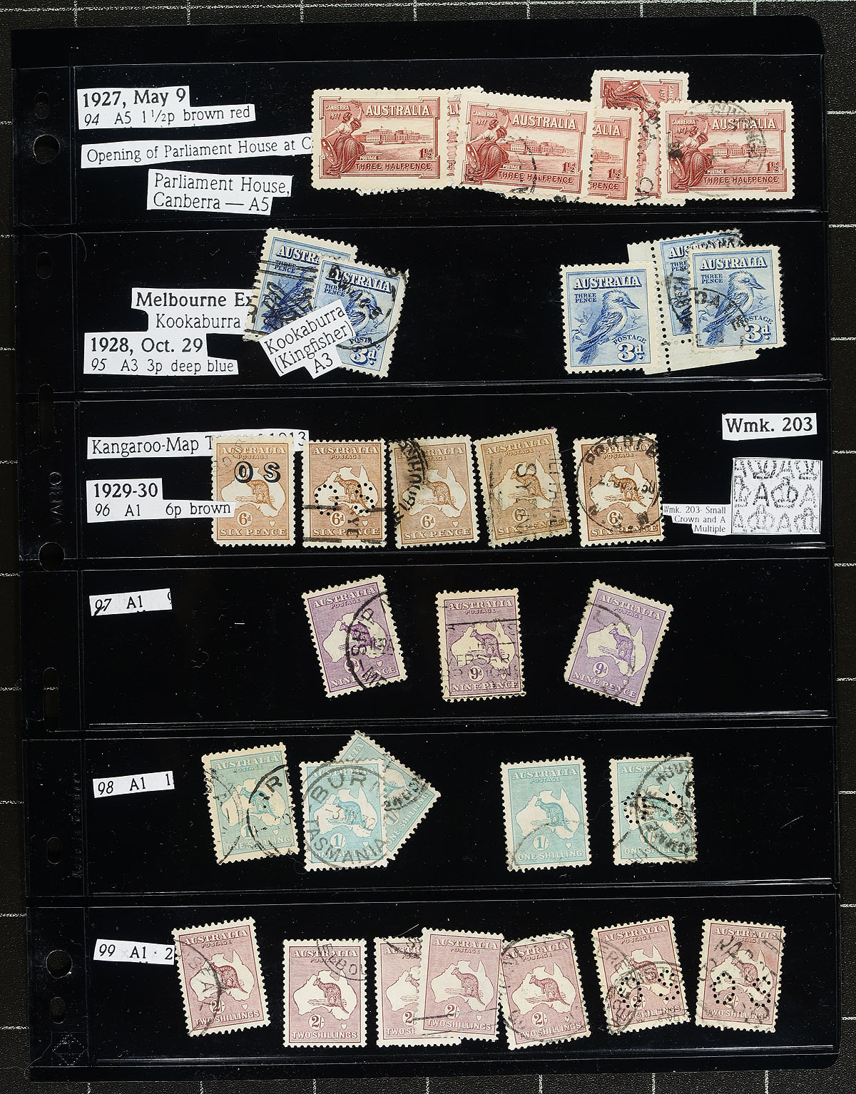 Large collection / accumulation of mint and used Australia, 1913-1987, containing several thousands of stamps in many double sided stock pages housed in a very thick binder. The lot generally ranges from Scott #1/1034, containing singles, sets, and back of the book issues, with most stamps identified by the owner. The lot begins with roughly 140 used Kangaroo issues (including #43-44), and a few hundred KGV Heads, all with a variety of watermark types, along with a few 'OS' perforated issues. The lot continues with a mix of mint and used issues from the 1930s onwards with a probable few hundred dollars worth of face value stamps. A nice lot for the specialist and a potentially high cataloguing lot, as a spot check indicated some stamps cataloguing $10 to $30 and up each. A few faults with a few stamps, overall fine to very fine. Estimate =