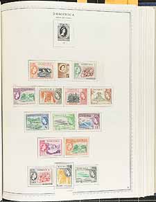 Nice starter collection of mint and used British America in a lovely hard cover Minkus album. The collection contains many hundreds of stamps, with singles, sets, and partial sets, generally ranging from KGVI to early Elizabethan issues, but did spot some Victorian and Edward VII material. We note better representation from Canada, along with St. Christopher, Dominica, Jamaica, Bahamas, just to name a few, with some material cataloguing $10 to $20 each. A lovely start to a British Commonwealth collection, especially in a high quality album, overall fine to very fine. Estimate =