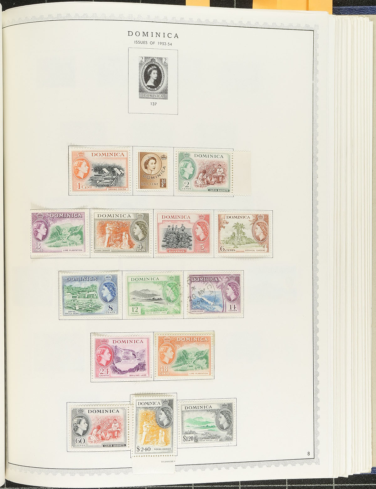 Nice starter collection of mint and used British America in a lovely hard cover Minkus album. The collection contains many hundreds of stamps, with singles, sets, and partial sets, generally ranging from KGVI to early Elizabethan issues, but did spot some Victorian and Edward VII material. We note better representation from Canada, along with St. Christopher, Dominica, Jamaica, Bahamas, just to name a few, with some material cataloguing $10 to $20 each. A lovely start to a British Commonwealth collection, especially in a high quality album, overall fine to very fine. Estimate =