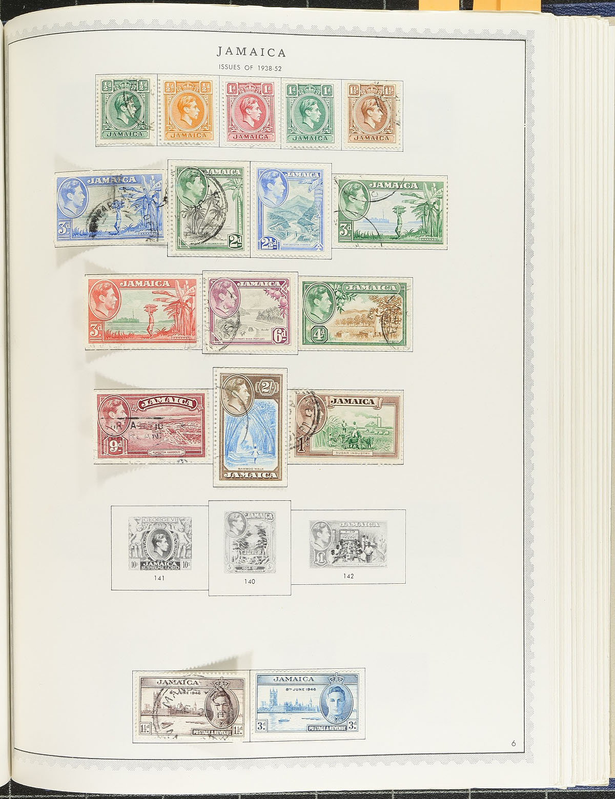 Nice starter collection of mint and used British America in a lovely hard cover Minkus album. The collection contains many hundreds of stamps, with singles, sets, and partial sets, generally ranging from KGVI to early Elizabethan issues, but did spot some Victorian and Edward VII material. We note better representation from Canada, along with St. Christopher, Dominica, Jamaica, Bahamas, just to name a few, with some material cataloguing $10 to $20 each. A lovely start to a British Commonwealth collection, especially in a high quality album, overall fine to very fine. Estimate =