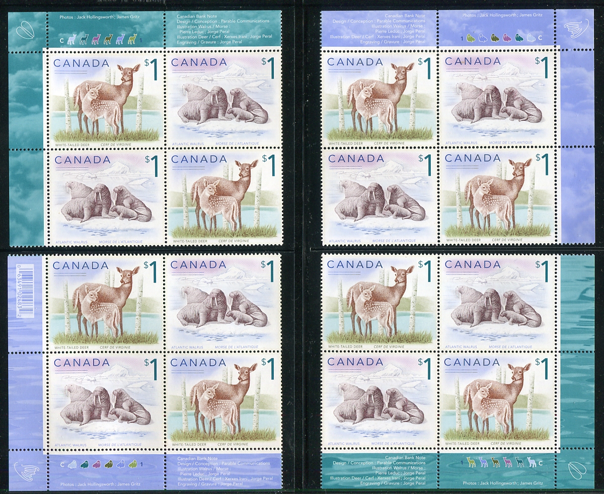 VF mint Never Hinged $1.00 White-Tailed Deer / Atlantic Walrus and $2.00 Peregrine Falcon / Sable Island Horse, in complete sheets, matched sets of inscription blocks and souvenir sheets. A complete run of these popular issues. 2025-2026 Unitrade =