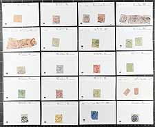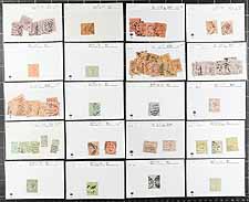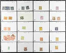 Group of mint and used stamps in roughly 80 dealer 102 cards, generally ranging from the late 1850's to 1912. The group ranges from Scott #3/232 along with a few postage due issues, with each card identified by Scott numbers and have older catalogue values, typically one stamp per card, with a few ranging from 2 to 5 stamps per card. Most of the cards have catalogue values ranging from to $4 to $20 each and up, with a total value of $976.20 for the lot (a few stamps were not counted due to obvious faults). A few small faults with a few stamps, still a nice lot for the Australia or Commonwealth collector, overall fine to very fine. Estimate =