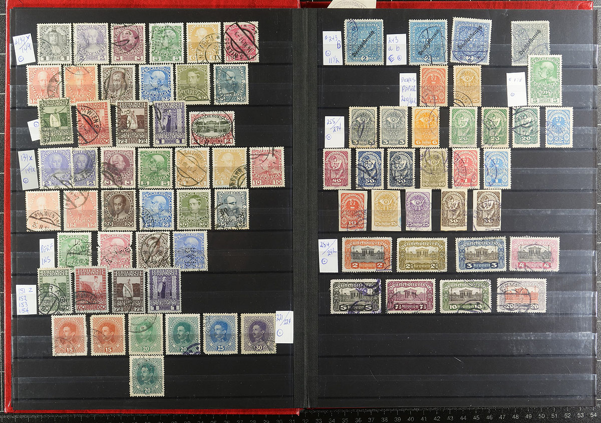 Nicely organized collection of mint and used Austria, 1851-1971, containing over 1,000 stamps in two well filled stockbooks. The collection generally ranges from Scott #9/905 (collection uses different catalogue numbers), including several mint and used sets, and back of the book issues. The first stockbook contains classic used from 1851 to roughly 1900, and continues with mint issues up to 1968, and the second stockbook contains used issues from 1915 to 1971. A spot check of material indicated some stamps and sets cataloguing in the $5 to $15 range, leaving better finds to the dedicated collector, including better postmarks, etc. A nice clean lot for collectors and dealers alike. Estimate =